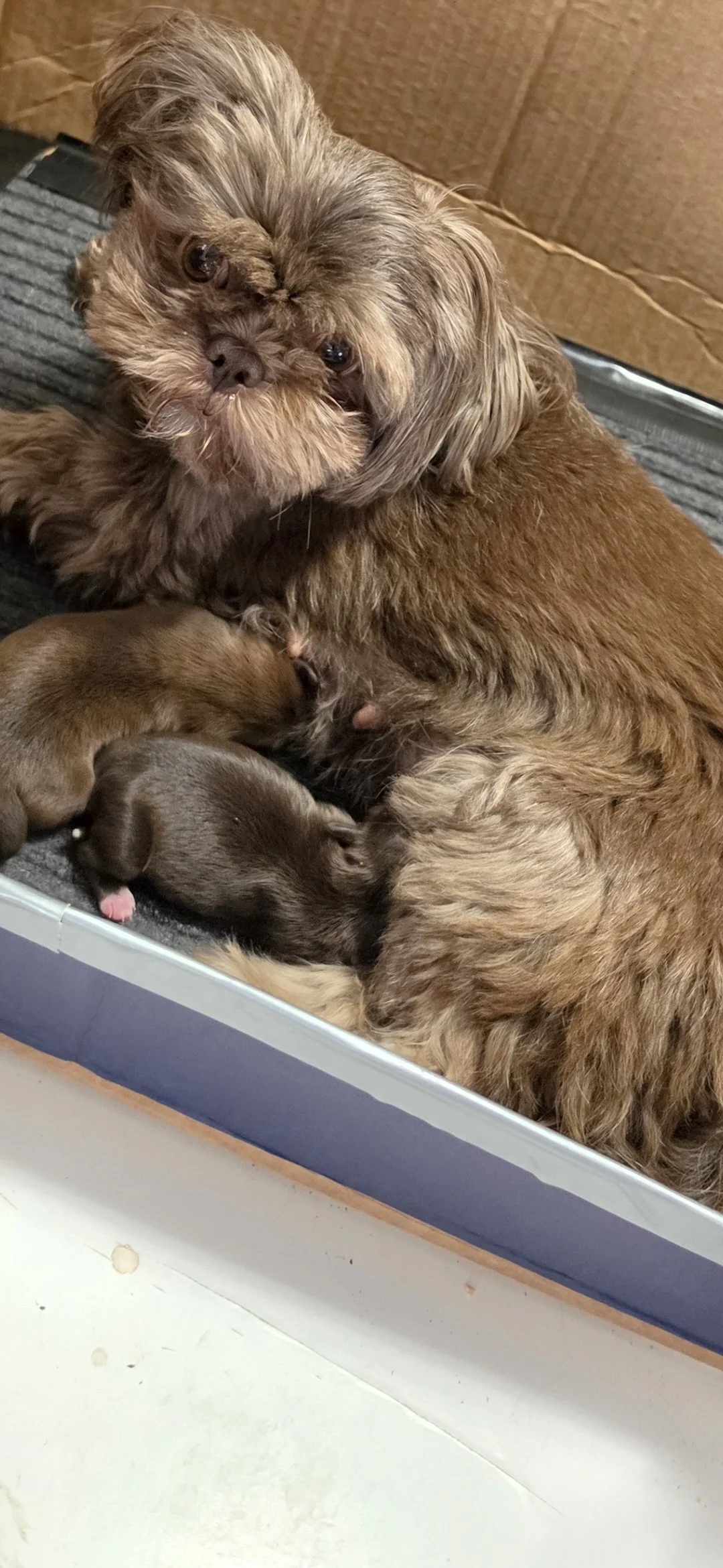 Mocha and Benny had a litter on 3/22/26 1 Female and 1 male, both are Chocolate. The Female is taken the Male is up for adoption.